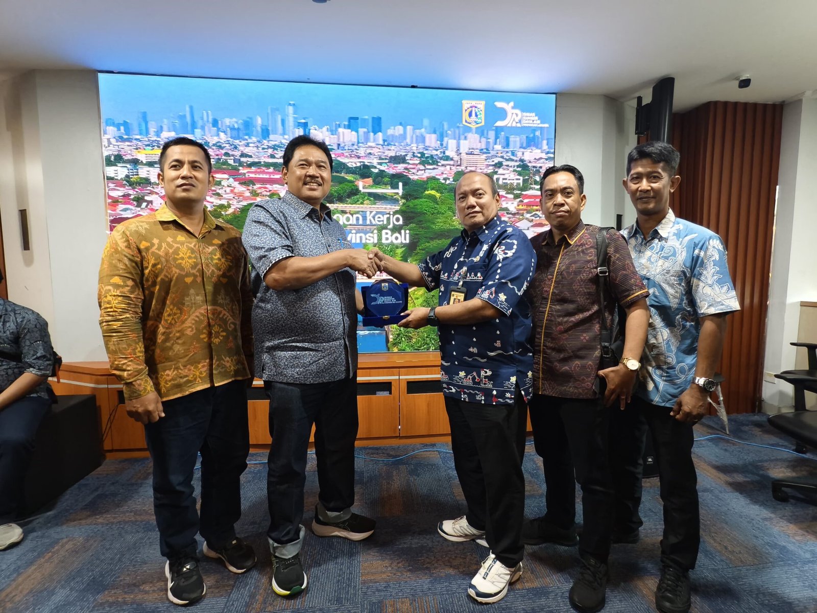 Sekwan DPRD Bali, I Ketut Nayaka (dua dari kiri) didampingi jajaran Setwan DPRD menerima cinderamata dari Dinas Sumber Daya Air (DSDA) DKI Jakarta