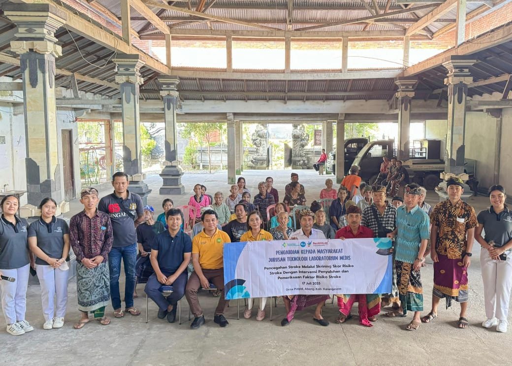 Berangkat dari kepedulian tersebut, dosen dan mahasiswa Jurusan Teknologi Laboratorium Medis (TLM) Poltekkes Kemenkes Denpasar melaksanakan kegiatan pengabdian masyarakat bertemakan "Pencegahan Stroke melalui Skrining Skor Risiko Stroke dengan Intervensi Penyuluhan dan Pemeriksaan Faktor Risiko Stroke". Kegiatan dilaksanakan di Kantor Desa Pidpid, Kecamatan Abang, Karangasem, Kamis (17/7/2025). Penyuluhan menyasar lansia yang memiliki risiko tinggi terhadap stroke.Kegiatan dibuka Kepala Desa Pidpid, I Wayan Gemuk dan menyampaikan apresiasi atas kepedulian institusi pendidikan terhadap kesehatan masyarakat desa, khususnya lansia. Ia berharap kegiatan ini dapat memberikan pengetahuan serta layanan kesehatan yang bermanfaat bagi warga.